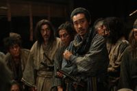 今回、暗黒の室町時代を生き抜き、世の中を変えようとした無頼たちの姿を捉えた、本編場面写真が一挙に公開された。ひそかに倒幕と世直しを計る兵衛が、鋭い眼光でなにかを見据えるカットや、そんな兵衛が悪友であり敵である、骨皮道賢と手に汗握る鍔迫り合いを繰り広げる様子など印象的な場面が公開されたほか、“無敵の棒術”を身に付けた才蔵が六尺棒を構えるアクションシーンのカット、志一つに松明を手に駆ける一揆の民衆、そして、仲間たちを従えた兵衛が睨みつけながら両手に刀を握る場面など、迫力満点の場面写真が解禁された。