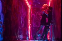 だが、アクション以外の妖艶な雰囲気も見どころ。劇中ロレーンは謎の美女デルフィーヌ(ソフィア・ブテラ)とネオンが妖しく光る空間で見つめ合い、至近距離で囁いたり、ロレーンがデルフィーヌを壁に押し付けキスを迫る、女性同士の“壁ドン”シーンも!2人の倒錯的なセクシーさに男女問わず心が奪われてしまう。