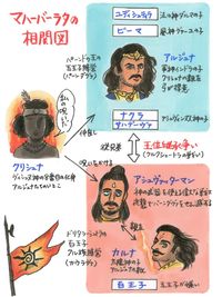 「マハーバーラタ」を一行で説明すると「正義の五人の王子と悪の百人の王子が、王位継承権をめぐって争い、大戦争で多くの人が亡くなる」という悲しい話である。しかし、インドでは国民的な人気があり、「マハーバーラタ」のエピソードは、子どものころからテレビドラマや映画、小説、漫画や絵本など、様々なかたちで親しんでいる。日本で例えるとすれば、「桃太郎」や「平家物語」「忠臣蔵」の立場に近い作品と言えるかもしれない。