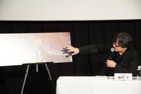この日は、1枚の“スーパーティザービジュアル”がお披露目となった。混沌とした地に、力強い眼差しをした女性が佇んだ1枚だ。『時をかける少女』から19年、時空を超える強き王女(ヒロイン)が誕生するという。前作となる『竜とそばかすの姫』は66億円という細田監督作品史上最高の興行収入を記録したが、スタジオ地図の齋藤プロデューサーは、「『竜とそばかすの姫』の公開時はコロナ禍、緊急事態宣言中という厳しい環境のなか、66億円という興行成績を記録した。他の国でも多くの人々に観ていただけた。現代性のなかで希望をずっと描き続けてきたからこそ、たくさんの方に観ていただいてきた作家」だと改めて細田監督作品の魅力を実感しつつ、世界でも受け入れられた同作について振り返った。