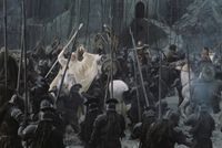 今回のメインの主人公はこのヘラで、彼女のキャラクターは『二つの塔』に登場したセオデン王の姪、エオウィンと重なる部分が多い。王に愛されているところや、実は男勝りで剣に長けているものの、女性ゆえにそれを認めてもらえない部分、最後は剣を持って闘うことになるなどがあげられる。そういうことも意識してか、今回のナレーションを担当しているのは「ロード・オブ・ザ・リング」でエオウィンを演じたミランダ・オットー。エオウィンが200年前の戦いを語っているというスタイルになっている。そしてヘラの侍女である最強のおばさん、オルウィン。意外なほどの大活躍を見せる彼女は“盾の乙女”という設定。エオウィンは“ローハンの盾持つ乙女”と呼ばれていたことを思い出してほしい。