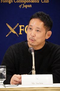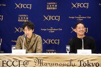 外国特派員協会記者会見で笑顔!