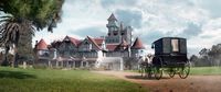 2018年の映画『コンジアム』はこの廃墟に足を踏み入れたYouTuberたちを襲う恐怖を、躍動感あふれるホラー描写で描いたPOVホラー。恐怖動画で人気のチャンネル「ホラータイムズ」は、応募で集まった一般人と共に男女7人でコンジアム精神病院へ潜入する。ホラー演出も功を奏し、登録者数を伸ばしていくものの、しだいに想定を超えた恐怖が連発し、402号室の呪いに触れてしまうことに――。