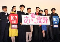 寺山修司が遺した唯一の長編小説を2部作として映画化した『あゝ、荒野 前篇』の初日舞台挨拶が10月7日に丸の内ピカデリーで開催され、菅田将暉、ヤン・イクチュン、木下あかり、山田裕貴、木村多江、ユースケ・サンタマリア、高橋和也、岸善幸監督が出席。ボクサー役を演じた菅田とヤンが、客席の間を通ってボクサーのように登場。菅田は大歓声を浴びつつも「なんか恥ずかしい」と照れまくり、会場の笑いを誘った。