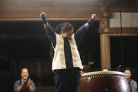 今回解禁となったのは、松坂も唸る和太鼓演奏シーンの場面写真。緊張感ある雰囲気のなかで鋭い眼差しを投げかける千穂が捉えられており、その佇まいや衣装からは普段千穂が見せないたくましい一面が垣間見える。和太鼓の演奏は初挑戦となる芳根だが、クランクインの約3か月前から練習に励んでいたという。「練習期間は、毎日プロテインを持ち歩いていました」と話すように、その当時は腕が一回り太くなったそう。周りにも「太鼓の作品をしていると思っていた」と、話しかけられるほど腕をパンパンにしながら練習に取り組む芳根だったが、「監督が何度も練習を見に来てくださっていて、その姿を見たらこんなにメソメソしていられない」と監督の存在が芳根を奮い立たせていたという。