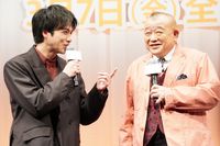 劇中で、同一人物の過去と現代を演じた鶴瓶と重岡。鶴瓶がメガネを外して重岡をじっと見つめると、重岡は「ちょっと僕の顔に似せています?」と応じ、これには会場も大笑い。上白石が「瓜二つ」と茶目っけたっぷりにツッコむ場面もありつつ、鶴瓶と重岡がニコニコと楽しそうにやり取りを繰り広げた。西畑夫妻の“永遠のお隣さん”を演じたくわばたは、鶴瓶と重岡が同一人物を演じると知った時には「重岡くんから、師匠になる。初めはいい加減にしてくれと思った。若いときはお目目ぱっちりで。なにがあったんだろうと思った」とぶっちゃけ。「でも皆さん、これがあら不思議。なんの違和感もないんですよ。重岡くんはすごくお芝居が上手で、若いころの苦悩が全部出ているから、鶴瓶師匠(が演じた保)の頑張りが余計にわかる」と太鼓判を押した。映画を観た人からは「(鶴瓶と重岡が)似ている」という感想をもらうという重岡は「うれしさと複雑さが半々」と冗談混じりに語り、鶴瓶から「こんな顔ちゃうわ!なんや!」とツッコまれていた。