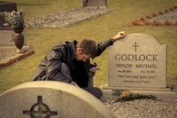 場面カットは、銃を構えギャングのアジトへ乗り込むシーンや、息子の墓石の前で屈みこむ主人公の姿、体中にタトゥーだらけのギャングなどを捉え、壮絶な復讐劇に期待が膨らむカットとなっている。