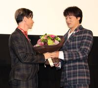 最後の挨拶になると、ミッチェル監督は山本にコソコソと耳打ち。キーを合わせながら、突然に歌い出したのは『ヘドウィグ・アンド・アングリーインチ』の「オリジン・オブ・ラブ」だった。会場からは手拍子が上がり、声を合わせて熱唱する姿に思わず涙をする人も。歌い終わるや万雷の拍手が鳴り響き、2人は熱いハグを交わしていた。【取材・文/成田おり枝】
