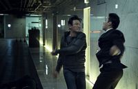 韓国映画界きってのアクション娯楽派として第一線を走り続けるヒットメイカー、リュ・スンワン。彼が武術監督チョン・ドゥホンと組んで作り上げた『ベテラン』(15)のアクションは、シチュエーションや小道具を活かしたジャッキー・チェン作品を彷彿とさせ、かつリアルな“痛み”を感じさせる肉弾戦の迫力に多くの観客が息を呑んだ。物語自体が「庶民の痛みを知らない富裕層」との戦いを描くからでもあるだろう。主人公の庶民派刑事ソ・ドチョル(ファン・ジョンミン)は、常人よりも体は丈夫そうだが、あくまで生身の人間であり、打撃を受ければ痛みに悶える。しかも、敵となる大企業の御曹司、チョ・テオ(ユ・アイン)は趣味としてMMA=総合格闘技を習得しており、ドチョルは一対一の格闘戦で徹底的に痛めつけられる。物語自体が「庶民の痛みを知らない富裕層」との戦いを描くからでもあるだろう。だが、ドチョルは我慢強さと執念深さ、そしてベテラン刑事ならではの機転で応戦する。
