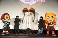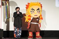 最後には、みに隊士(竈門炭治郎、煉獄杏寿郎)も駆けつけ、花江の「この作品を、何度でも劇場でお楽しみいただけることを願いまして!」、日野の「『劇場版「鬼滅の刃」無限列車編』リバイバル上映、スタートです!」との掛け声を合図にくす玉を割った。日野は「煉獄さんの誕生日という記念すべき日に、こういう形で皆さんと会えて、お話できて幸せでした」と挨拶。花江は「何度でも煉獄さんの背中を目に焼き付けていただければと思います。これからも心を燃やして頑張っていきます」と誓い、大きな拍手を浴びていた。