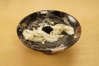 1930年代のパートでは、天皇の料理番・山形直太朗(西島秀俊)が作る絢爛豪華なフルコースが画面を彩る。巨大な肉や、まるまると育った野菜など、スクリーン越しにも新鮮だとわかる食材をふんだんに使った料理に、誰もが目を奪われるはず。なかでもひと際存在感を放つのが「黒と白のラビリンス 孔雀肉のドルマ仕立て」。葡萄の葉で包んだ孔雀の肉を、黒と白の石で蒸し焼きにしたもので、食べる前に全体をフランベしていただく。劇中では物語が大きく動く直前に登場し、重要な役割を果たすだけに、一度は味わいたいと思わされる。
