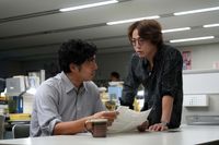 さらに、キャラクターの人となりが垣間見える場面写真も解禁。薮下は、校長の段田重春(光石)の指示で保護者懇親会に出席していた。児童への体罰があったとして、保護者に向けて謝罪と説明をするという意図のもと開かれたのだが、律子も出席するこの会で、必死になにかを訴えかける薮下の鬼気迫る表情が事態の重さを物語っている。続いて、夫、氷室拓馬(迫田孝也)を従えて学校に乗り込む律子のシーンのカット。黒のジャケットを羽織り、シャツのボタンは一番上まできっちりと締めた律子。すれ違う児童には目もくれず鋭い眼差しで進むその姿からは、息子を守る母親の強い意志が感じられる。鳴海は、週刊春報の編集部で上司である編集長の堂前(高嶋政宏)にでき上がった原稿を見せている。鳴海の気概に押された編集長は、実名での報道に踏み切るのだが…。身を乗りだし真剣な表情で訴えかける鳴海の姿が印象的なカットとなっている。
