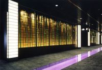 京都のモチーフが所々に用いられた当劇場では、枯山水の石庭風景を楽しめるコリドーは大きな特徴のひとつ。ただし開業当初、竹林と石庭については、いろいろと試行錯誤をしたのだとか。「開業前から本物の竹を設置していたのですが、湿気により竹が割れてしまったり、石庭の石にもカビが生えてしまったりしたので、換気設備などを変更し、無事に開業することができました」と苦労を明かすも「いわゆる“映える”コリドーということで、フォトスポットとしても人気です」とのこと。