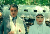 このたび解禁されたのは、リーズルと家庭教師ビョルン(セラ)を引き連れたザ・ザ・コルダの旅路を切り取った場面写真。様々な刺客から命を狙われるザ・ザ・コルダ。プライベートジェットを操縦しているカットでは、なんと機体の屋根が穴だらけに。すでに左腕を負傷しているザ・ザ・コルダだが、ほかのカットでも、額にけがをしていたり、シャツに血がついていたり…険しい旅路だったことが想像できる。ビョルンに嘘発見器を付けて尋問するようなカットもあり、常に命を狙われているザ・ザ・コルダの気苦労も察せられる。またザ・ザ・コルダとビジネスパートナーたちの“交渉中”のカットに加えて、なぜかとてもラフな格好のハンクス、そして、赤いソファに悠々と腰かけるカンバーバッチ演じるヌバルおじさんのラスボス感溢れ出るカットも公開。ヌバルおじさんは、物語後半でザ・ザ・コルダと決死のバトルを繰り広げる。