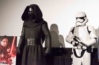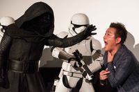 「光か、闇か…」のキャッチコピーに、全体的に赤を基調としたポスターデザインに井戸田は「もしかしたら全員ダークサイドに落ちるのでは…」と予想を立てる。すると、会場に不穏な音楽が流れ始め、スペシャルゲストのカイロ・レンがストームトルーパーを従えて登場した。