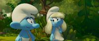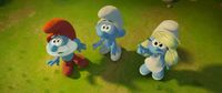 予告は、平和なキノコ村で大好きなダンスを幸せオーラいっぱいにお披露目するスマーフたちから始まり、インフルエンサースマーフ、カムフラージュスマーフ、音響効果スマーフなど、それぞれの個性を持ったスマーフたちの姿が映しだされる。そして今作のメインキャラクターであるスマーフェットと、1人悩むノーネームの姿も。