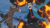 バミューダ海域にある世界地図に存在しない謎の孤島へやって来たルパン一行(『LUPIN THE IIIRD THE MOVIE 不死身の血族』) 原作:モンキー・パンチ [c]TMS