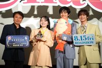 パフォーマンス後は、スクリーンでの舞台挨拶へ。「ステファンとチャオが織りなす恋物語で惹かれる部分は?」との質問に鈴鹿は「チャオの一途な姿を見ているとキュンキュンします。微妙なところも丁寧に描かれている、その空気感が好きです」とニッコリ。山田は「人間界の生活に慣れていないながらも、ステファンのために靴を洗ったり、ご飯を作ったり。頑張るチャオの一途なところは魅力的だと思うし、2人の心が繋がっていく関係性がすてきだなと思いながら観ていました」と愛おしそうに語る。「ステファンとチャオがどんどん理解し合っていくところは、いつのまにか愛おしくなります」と微笑んだ太田は、観終わったあとに「可愛かった」と思うと同時に、「どういうことだったんだろう?」と惹き込まれるような、気になるポイントもあるとも指摘していた。「ステファンもチャオも不器用」と指摘した青木監督は「どのキャラも観終わったあとに、カッコよかったとか、可愛かったとか思ってもらえるように考えて作った」とも明かし、それこそが本作の魅力になっているとにっこり。見どころや注目ポイントを説明しなくても、「観たら感じてもらえるはず!」と出来栄えに自信といった様子で語っていた。