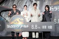 『ジュラシック・ワールド/復活の大地』(8月8日公開)のシリーズ新章始動イベントが7月1日に東京都内で行われ、日本語吹替キャストを務める松本若菜(ゾーラ・ベネット役)、岩田剛典(ヘンリー・ルーミス役)、吉川愛(テレサ・デルガド役)、楠大典(ダンカン・キンケイド役)が出席した。