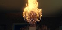 また、劇中で猿のおもちゃの呪いによって何とも不運な死を迎えてしまう人々のカットも解禁。火だるま、生首、眼球流血など、“ありえない死に方でありえないほど人が死ぬ”イカれたストーリー展開がわかるカットとなっている。不慮の事故死と猿のおもちゃに関連があると疑ったハルが、猿のおもちゃの腕を包丁で切り落とすも、中からドロっとした血のようなものが。猿のおもちゃに翻弄される人々を怖いのにどこか笑えるユーモアを交えて写した場面写真となっている。