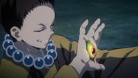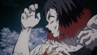 炭治郎が鬼殺隊入隊のための試験、“最終選別”の地で出会う鬼。50人以上もの人間を喰らい、無数の太い腕で弱点である頸を守る、その姿は禍々しいまでの異形。自分を封印した炭治郎の師匠、鱗滝左近次(声:大塚芳忠)に恨みを持ち、鱗滝の弟子を執拗にねらう。炭治郎は、まるでゴムのように伸び縮みする腕とその腕に堅く守られた太い頸に苦戦するが、錆兎(声:梶裕貴)と真菰(声:加隈亜衣)も見守るなか、見事に討ち果たし、最終選別を生き残った。