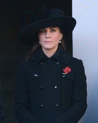 ロイヤル・フェスティバル・ホールで行われた追悼式典の前夜イベントには、ダイアナ妃のお気に入りのデザイナーだったキャサリン・ウォーカーの黒いエレガントなコートドレスで挑んだキャサリン妃。翌日の追悼式典では、ドルチェ&ガッバーナの黒に金ボタンのミリタリー風のコート(すでに完売)を着て登場したが、ピープル誌が、キャサリン妃の帽子は11年前に彼女が被っていたものであることを指摘している。