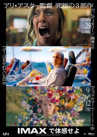 8月29日(金)より、全国のIMAXシアターにて上記3作品をそれぞれ1週間限定で上映。国内外でスマッシュヒットを記録し、アスター監督自身が「3部作のようなものだと思っている」と語る3作が、IMAXの巨大スクリーンと迫力ある音響で新たな次元に到達。恐怖と視覚、音響的衝撃を最大化し復活する。