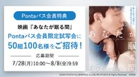 土日や祝日も含め、公開期間中はいつでも一般・大学生が1100円、高校生以下なら900円で鑑賞可能。また同伴者も1名まで割引価格で観賞券を購入することができる。さらに、『あなたが眠る間』を最速で観られるPontaパス会員限定試写会の実施も決定しているので、気になる方は応募サイトをチェックしてほしい。