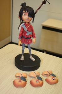 今回は、実際に撮影で使ったKUBOのパペットを持参しての来日となった。手に取って見せてもらうと、顔のパーツを交換できたり、瞳を閉じる割合が自由に調節できたりと便利な作りになっていて、衣装の質感も実にリアル。中でも着物の袖の表現には本当に苦労したと言う。