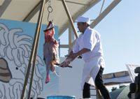 1998年に始まった「大洗あんこう祭」では、第16回(2012年)より「ガルパン」関連イベントが催され来場者が急増。『ガールズ&パンツァー 劇場版』(15)のロングランヒットを経た昨年の第20回は過去最多の13万人が来場した。各メディアは「ガルパン」周りを注目して紹介しがちだが、祭りの肝は地元で堪能できる‟冬の味覚”アンコウだ。午前・午後の計2回、メイン会場の大洗マリンタワー前広場ステージで披露されるアンコウの吊るし切りは、アンコウが部位毎にどんどん捌かれるさまを解説付きで目の当たりにできる企画だ。アンコウはもちろん「あんこう汁」として安価で振る舞われ、観光客が整理券を求めて列を成す。