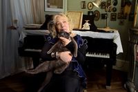 また、場面写真も披露された。美しい音色を生み出す演奏カット、義理妹エヴァとフジコの貴重なショット、パリの自宅で語るフジコ、愛する猫や犬との写真など素顔が伝わる写真が公開された。