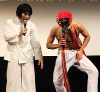 また、マッチョな体に“インド風”スカーフ&ターバンを身につけて会場の笑いを誘っていた樽美酒は「インチキおじさん登場!」とノリノリだったが、トーク中にズボンが破れてしまうハプニングも。「ビリッていった!」とはしゃぎ、会場の爆笑を誘っていた。
