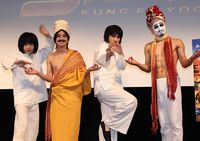 考古学者ジャックがインド人美女アスミタらとともに、古代の秘宝を探す旅に出る姿を描く本作。この日、メンバーはカンフーとヨガを融合させたハチャメチャなコスプレ姿で登場した。