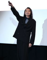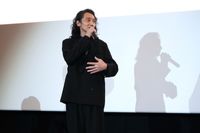 作中で、小室哲哉作曲の楽曲のカバー歌唱やCG ライブ映像が話題を呼んでいる“三強”のキャラクターを演じた三木、関、森久保が登壇するということで、菱田総監督はイベントにあわせて、今朝入手したばかりという“三強”の文字&イラストがあしらわれたTシャツ姿で登場し、会場を沸かす。