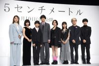 『君の名は。』(16)、『天気の子』(19)、『すずめの戸締まり』(22)など、記録的な大ヒット作を生み出してきた新海誠監督が2007年に手掛けた劇場アニメーション『秒速5センチメートル(2007)』。そんな同作の実写映画化作品『秒速5センチメートル』が、10月10日(金)より公開される。これに先駆けて8月27日に完成報告会が都内にて行われ、松村北斗(SixTONES)、高畑充希、森七菜、上田悠斗、白山乃愛、宮崎あおい、吉岡秀隆らキャスト陣と奥山由之監督が出席。本作を実写化するにあたっての想いや、ついに完成を迎えた現在の心境、役に込めた気持ちなどを語った。