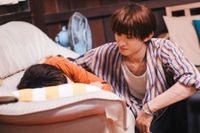 解禁となったのは、運命の再会を果たした2⼈の“両⽚想い”があふれる場⾯写真。相合傘をする2⼈の姿を収めたエモーショナルなナイトマーケットでのデートシーンは、本来は晴れの予定がスコールにより急遽⾬のシーンへ変更となった、偶然の⾬がもたらしたロマンティックな名シーン。濡れた地⾯に光が反射し、より幻想的な雰囲気が漂うなかで、2⼈の間に熱い感情が蘇っていく。また別カットでは、ソファーで横になるソウタをカイが優しく⾒守るシーンも。いつもはクールなカイが、ソウタだけに⾒せるその優しい表情と視線から、胸に秘めた想いが伝わってくる。