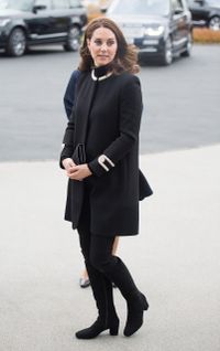 朝には、黒いスキニージーンズとロングブーツに、御用達ブランドであるゴートの黒いコートと、全身ブラックで決めたキャサリン妃が、ウィリアム王子と愛車のランドローバーの工場を訪れ、同車を試乗した。