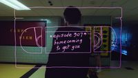 解禁されたのは、ハイスクールの廊下を歩くオーウェンの後ろ姿をワンカットで追っていく本編シーン映像だ。映像の冒頭では、1990年代を思わせる懐かしのVHSテープのイラストに、「*episode 307*homecoming to get you(“307話 君を迎えに”)」とピンク色で描かれ、オーウェンとマディを夢中にさせる深夜のテレビ番組「ピンク・オペーク」の各週のタイトルが画面に描かれていく。これは、家が厳しいためリアルタイムに「ピンク・オペーク」を観られないオーウェンのためにマディがビデオを毎週貸しているときのメッセージだ。
