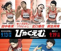 公開されたスペシャルビジュアルは、キャラクターデザイン、総作画監督の⼩嶋慶祐が、各選⼿の競技中の姿からイメージを膨らませアレンジを加え描き下ろしたもの。真剣な表情とダイナミックなパフォーマンスの瞬間が切り取られ、いまにも『ひゃくえむ。』本編でキャラクターと肩を並べ、競技シーンに登場しそうな躍動感あふれるビジュアルとなっている。トガシ、⼩宮と同じ男⼦100mには、9秒96でワールドランキング20位と⽇本⼈選⼿最上位で選出されたサニブラウン。サニブラウン選⼿は、作品について「陸上含め、⼈⽣について結構リアルでした。100mは弱⾁強⾷でなにが起こるかわからない。⼈⽣を懸けて勝負しています。映画から、陸上が楽しい、⼀番速く⾛りたいという初⼼を思い起こされました」と作品の魅⼒と⾃⾝の想いを語る。