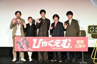 9月19日、都内で行われたアニメーション映画『ひゃくえむ。』初日舞台挨拶に松坂桃李、染谷将太、笠間淳、高橋李依、そして岩井澤健治監督が登壇した。