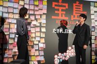 妻夫木は、“宝島宣伝アンバサダー”として6月から3か月間にも及ぶ全国キャラバンを実施。今日までに訪問した場所は27都市、名刺を手渡しした観客、劇場スタッフは5000名以上に達したという。この日のステージには、全国の人たちから届いた直筆メッセージを集めたスペシャルボードが登場。「魂が震えた作品」「3時間ずっと感動しました」「日本国民、全員に観てほしい」など、妻夫木の想いを受け取った人たちのメッセージは熱いものばかり。メッセージを見渡した妻夫木は「本当にうれしいです。感動的です。一つ一つの場所で、だんだん家族が増えていくような感覚をいただけた。皆さんに感謝しています」と感無量の面持ちを見せ、「映画は観ていただいて初めて完成するもの。この映画に至っては、観ていただいた後も皆さんによって成長させてもらっているという感覚がある」と直接手渡している実感を持てた映画だと熱を込めた。