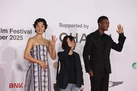 On Screen部門で上映される日韓合作のNetflixドラマ「匿名の恋人たち」からは月川翔監督とハン・ヒョジュが。ゴールドのスパンコールをぎっしりちりばめたホルターネックドレス。丁寧かつナチュラルに作り込まれたメイクで気品がより引き立っていた。相手役を小栗旬が務めた本作は、10月16日より配信がスタートする。