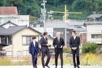 「これからの復興を⼼から願っています」とエールを送った舘ひろしと輪島市⻑の坂⼝茂