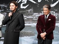 【写真を見る】舘との撮影を振り返った眞栄田郷敦。シックなブラックコートをまとって登場