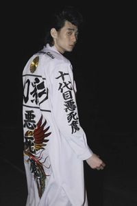 まずは、ロングの黒髪と鋭い目つきがワイルドな柳俊太郎から。宮城県仙台市出身で現在26歳の彼は、テレビドラマ「いつかティファニーで朝食を」や「HiGH&LOW」シリーズなどに出演し、すでに俳優としても活躍中。独特かつクールな佇まいの持ち主で、現在公開中のヤンキー青春映画『デメキン』では、バイク事故で死んでしまった、主人公の憧れの総長・真木役を務める。ビシッとキメたリーゼントと特攻服の柳の姿にしびれる!(※「柳」の正式表記は旧字体)