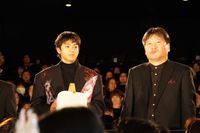 最後に再び客席の中通路に立った山田は、「初日から観に来てくださってありがとうございます」と改めてお礼を述べ、「ぜひ『爆弾』チームの力を受け取って、皆さんで爆発させていただきたい。きっと『観た?ヤバかった』と広まっていく作品だと思っています。楽しみにその経過を見ていきたい」と期待。佐藤は「李相日監督が個人的にファンと言っていいくらい、好きなんです。『怒り』という映画はバイブルにしたいくらい、大好きな作品。今年は『国宝』というとんでもない、化け物みたいなおもしろい作品をつくられて。ますます李相日監督のファンになっている」と李監督への愛を叫びつつ、「実は今年、化け物みたいにおもしろい作品は1本だけじゃないと思っています。今年は日本映画にとってとても幸せな1年になるんじゃないかと思いますし、なってほしいなと心から祈っています」と本作のお披露目に誇らしげな表情を浮かべ、大きな拍手を浴びていた。