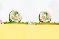舞台挨拶の終盤には、フルーツを削り出して模様を描く「カービング」と呼ばれるタイの伝統工芸で、ソウタとカイのビジュアルが描かれたスイカが登場。一同は「すごい!」と感激し、スイカと共に写真撮影に応じていた。