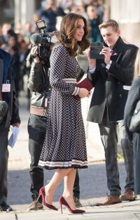 過去にもキャサリン妃は、数回フレアスカートがめくれ上がるハプニングがあったことから、エリザベス女王からスカート丈について厳しく注意を受けていると報じられており、昨今ではひざ丈のスカートやワンピースが多かった。