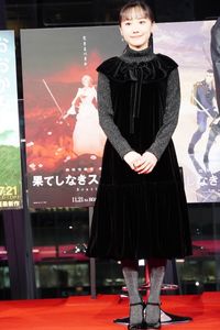 先日、細田監督が歌詞を書き下ろしたエンディングテーマ「果てしなき」を芦田が歌っていることも発表となったが、芦田は「歌って、言葉では伝えられない本音があらわれるなと感じていて。スカーレットとして、歌わせていただいた。凛々しく、カッコよく、強くあらなければいけないというスカーレットの本質と、繊細な部分もある。そのやさしい本質の部分が、にじみ出るように歌えればいいなと思いました」と歌に込めた想いを口にした。細田監督は、「すんばらしい」と芦田の歌唱を絶賛。「芦田さんがスカーレットの気持ちを胸に置いて、歌ってくださった。映画自体に、すごくいい余韻を響かせていただいた。本当に惚れ惚れとする。すばらしい歌」と賛辞を重ねると、芦田は「ありがとうございます」と照れ笑いを浮かべながら、喜びをにじませていた。