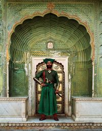 オウディアスが自身の妻の美貌に目を付けたことを知ったインド人が、妻がいる部屋に鍵をかけて扉の前で見張ったというエピソードで映るのは、美しい装飾を施した緑の門。インド人の衣装の色とも重なり、インドの国旗にも使われるグリーンは同地では豊かさや騎士道を表す大事なカラーとされている。また、インド人が自死した妻の死を嘆き、二度と女性を見ないと誓う青い部屋はシティ・パレスの奥にある元王族が暮らすプライベート空間で撮影され、こちらも見学が可能とのこと。